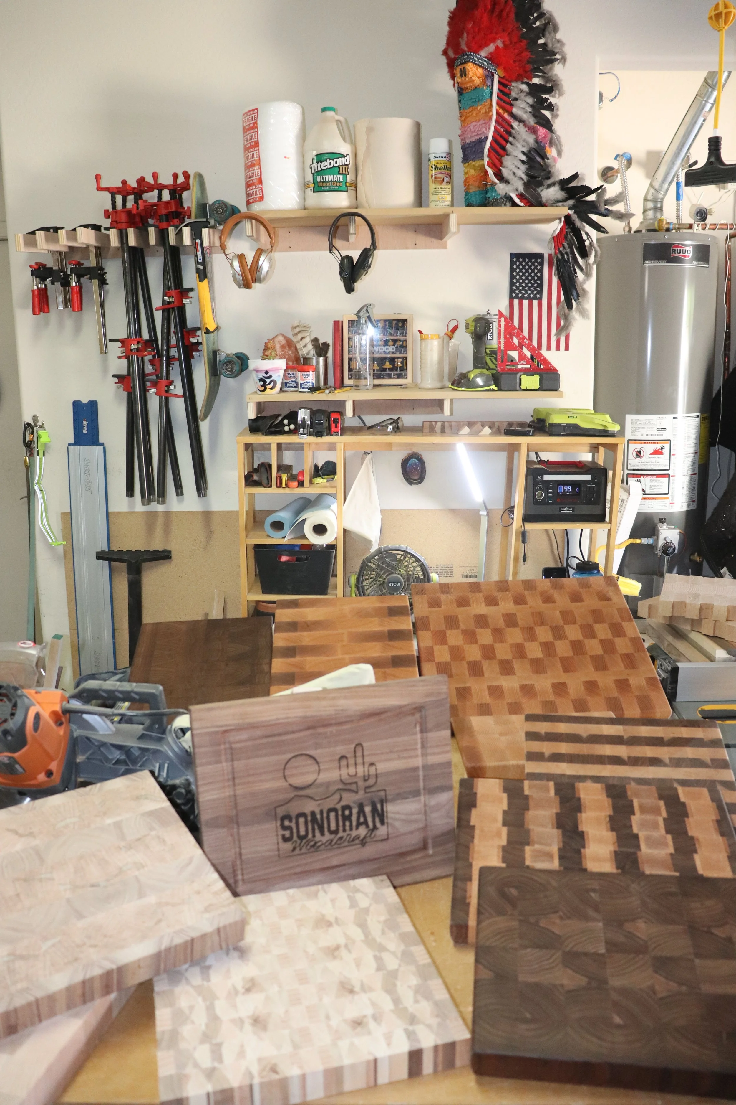 Sonoran Woodcraft began in the summer of 2022 with a simple goal: spend more time building beautiful things by hand. After working for a sliding barn door company, I decided to dedicate my free time to woodworking—starting with handcrafted cutting boards made for friends and family.